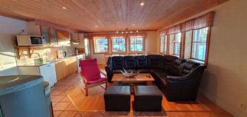 Undervåningen i ett tvåplanshus på Kantarellstigen i Björnrike med möjlighet att ta sig till backen på skidor. Perfekt för en eller två familjer som vill njuta av allt som Björnrike har att erbjuda.Sovplatserna är fördelade på fyra sovrum, två av sovrummen har våningssängar med bred underslaf med möjlighet att sova två. De andra två sovrummen har varsin dubbelsäng. Den öppna planlösningen med sammanhängande kök och storstuga möjliggör kvalitetstid med vänner och familj efter en dag i backen.