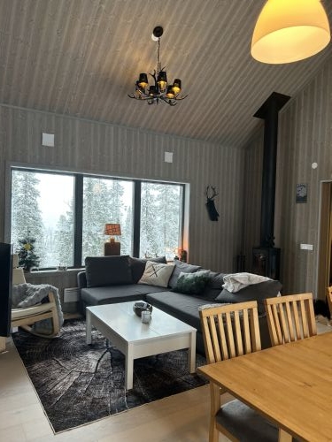 Avstånd till längdspåren är cirka 300 meter och 600 meter till stora M och utförsåkning.