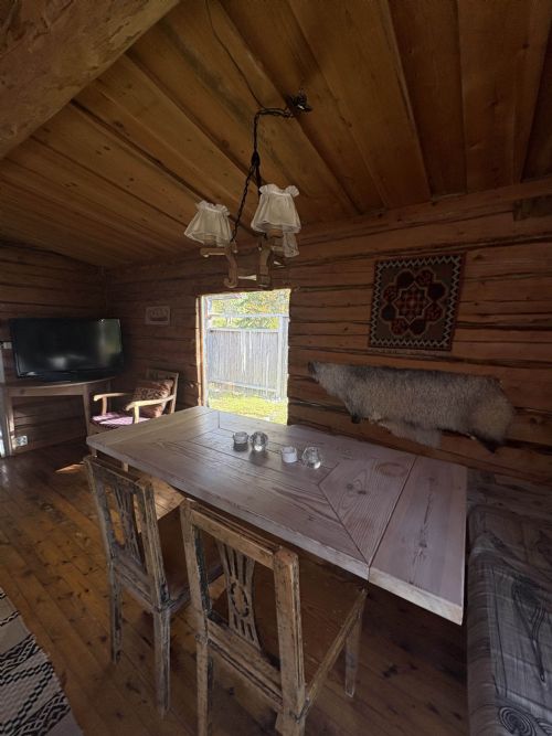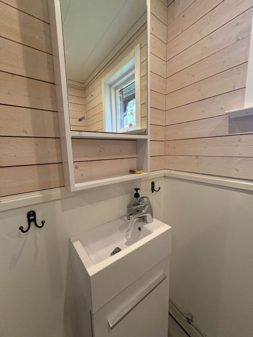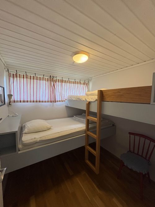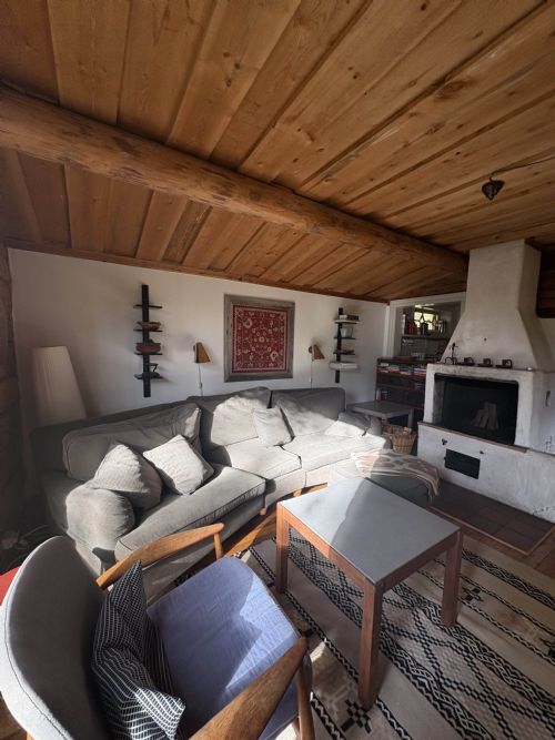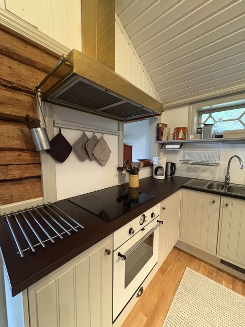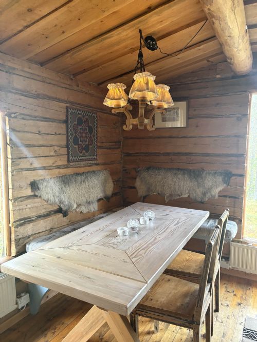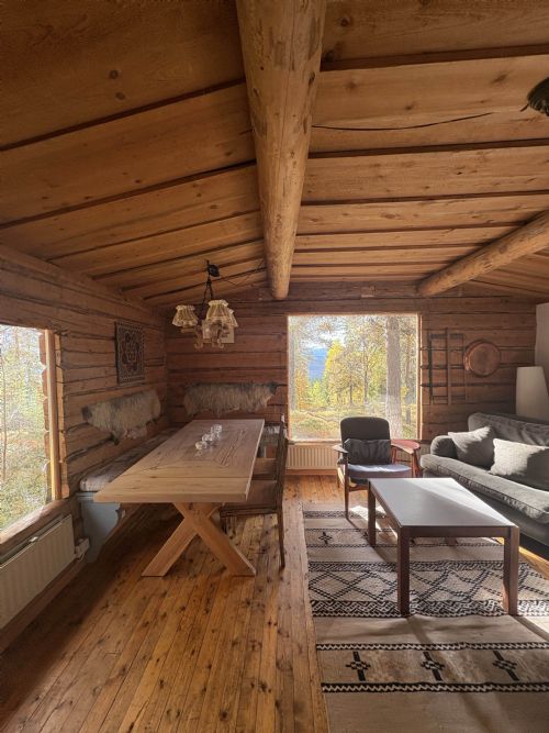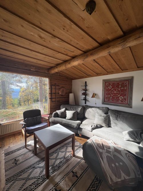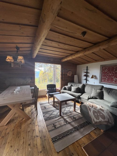Stugan rymmer två sovrum och ett mysigt sovloft, perfekt för både familjer och mindre sällskap. Det rustika allrummet med synliga timmerväggar, stora fönster och öppen spis bjuder in till avkopplande kvällar framför brasan. Köket är fullt utrustat och kombinerar klassisk fjällstil med modern funktionalitet.