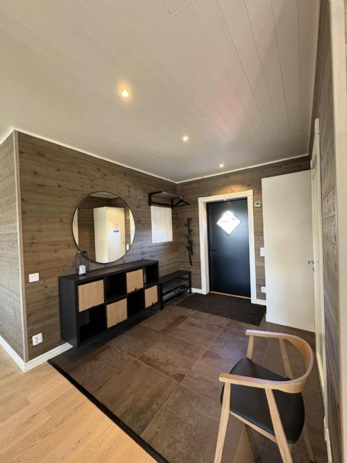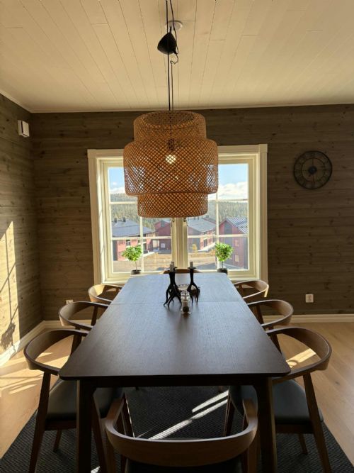 Bostaden är generöst tilltagen med en öppen och luftig planlösning som passar utmärkt för både familjer och vänner. De stora ytorna skapar en avslappnad och social miljö – här finns gott om plats för att laga mat tillsammans, umgås i vardagsrummet framför braskaminen och verkligen landa efter en dag ute i snön. Inredningen är modern med stilrena detaljer och alla bekvämligheter du behöver för en härlig fjällvistelse.