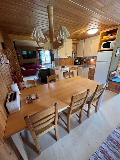 Här finner ni en mysig äldre fjällstuga med väldigt trevlig läge. Precis intill längdspåret och gångavstånd till Vemdalsskalets torg där du finner allt du behöver för en vecka.Huset är fördelat på kök med matplats i öppenplanlösning, Vardagsrum med tv. 2 sovrum varsin våningssäng i bägge och toalett. Stor och rymlig hall. Sen har du en separat sovstuga med 2 våningssängar.