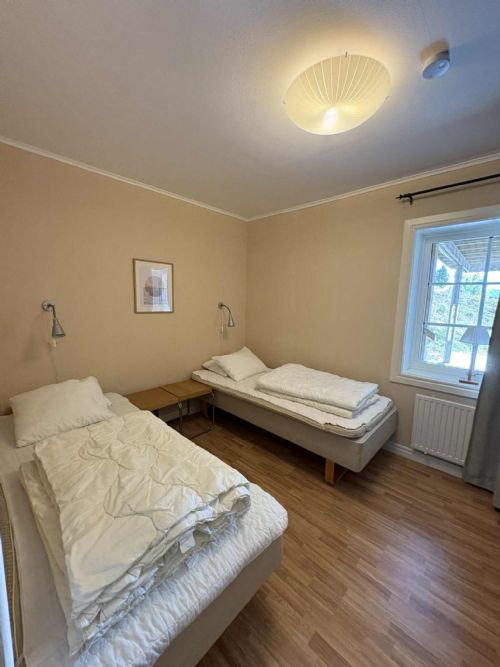 Sovrum 1: 2x enkelsäng (90x200), går att ställa ihop till dubbelsäng.