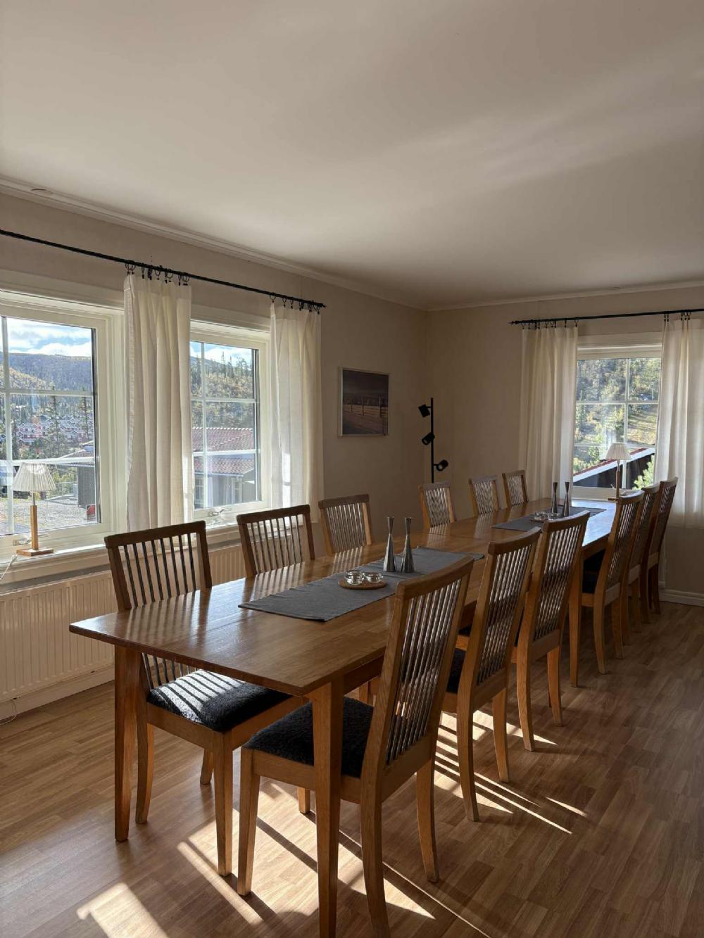 Det stora öppna vardagsrummet med sammanhängande kök och matplats skapar möjlighet för kvalitetstid med vänner och familj efter en dag i backen.