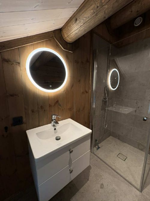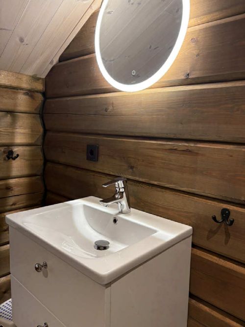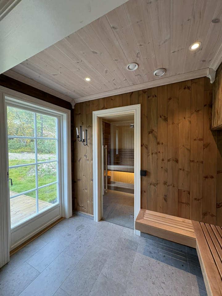 Stugan ger möjlighet för avkoppling efter en dag i backen eller längdspåret med både bastu och spabad.